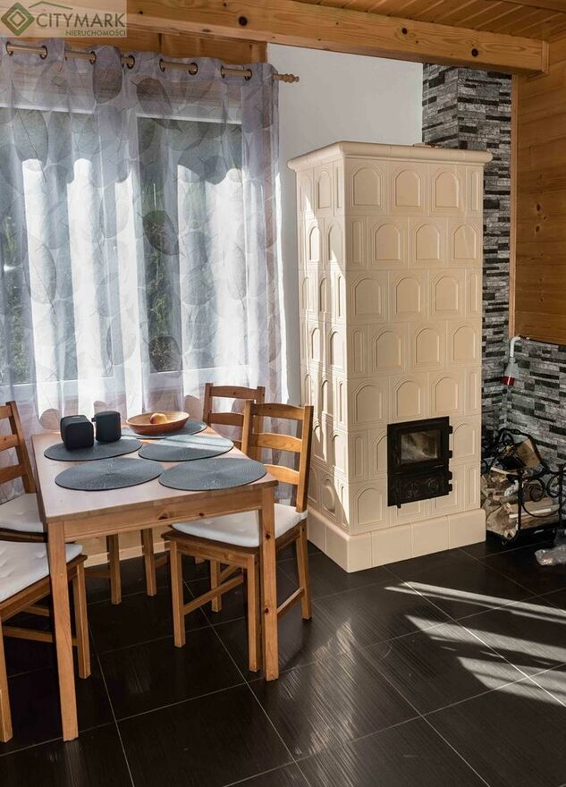 - salon, jadalnia z aneksem kuchennym, piec kaflowy;